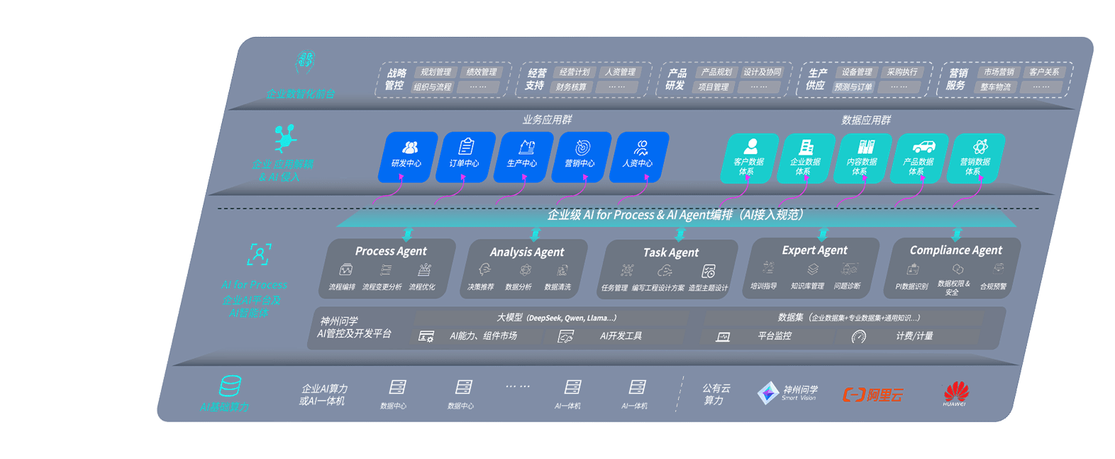 GOWIN问学智车解决方案是一套基于AI技术的汽车行业智能化系统,,覆盖从底层算力到顶层AI应用的全栈方案。。。方案由算力层、、、模型层和应用层组成:算力层,,,,方案支持多种一体机配置,,,,具备云端灵活部署、、多云适配以及动态优化计算资源的能力;模型层,,,,GOWIN问学平台版提供了企业级AI应用一站式构建与管理平台,,支持基于后训练强化技术的汽车企业专属模型的训练、、、评测和运营;应用层,,GOWIN问学DeepSeek版提供包括超级员工、、智能招采、、、智能营销、、、智能客服、、、、AI for BI等一系列解决方案,,可助力汽车行业实现数字化转型,,,,让管理更智能、、、响应更敏捷。。。